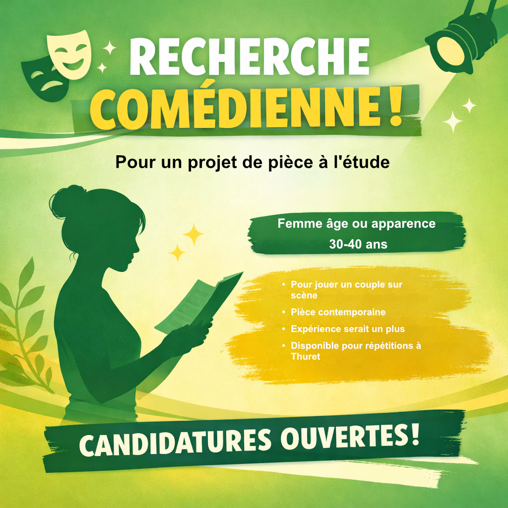 Nous recherchons une comédienne 30/40 ans (d’âge ou d’apparence) pour monter une pièce en parallèle des ateliers[…]
